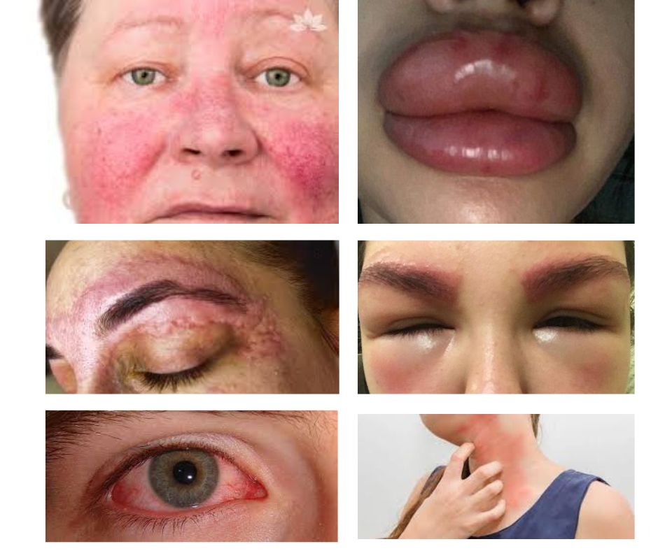 Dermatite de contact, urticaire, anaphylaxie : signes, traitements (antihistaminiques, corticostéroïdes, épinéphrine), prévention et tests de sensibilité.