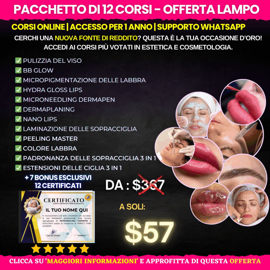 Invi a un messaggio cliccando sul pulsante qui sopra per accedere a una condizione SPECIALE ed ESCLUSIVA del nostro Combo di corsi 12 in 1 + 7 bonus esclusivi.